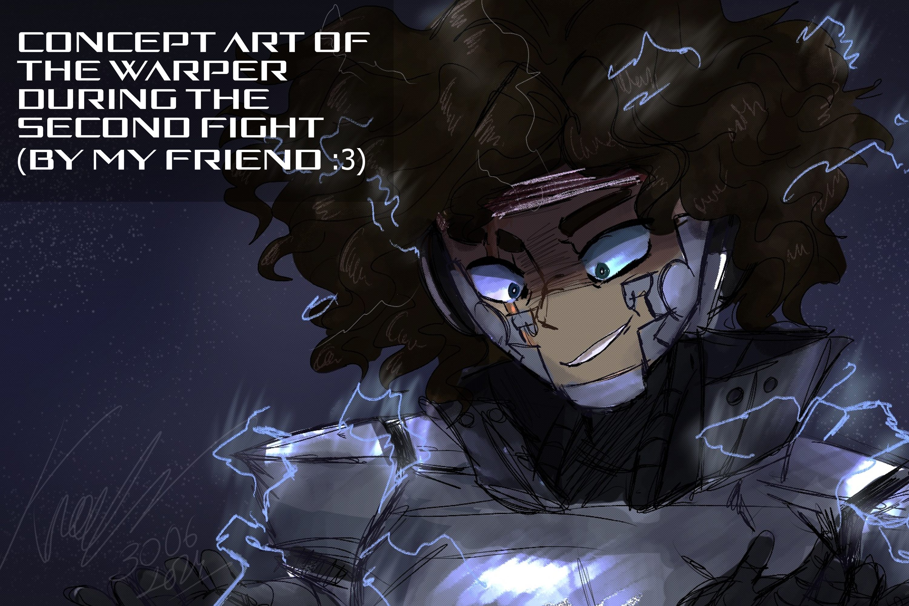| Overcharge | After an emergency alarm in the Kwantim co. fusion powerplant M-47 goes there only to find that some guards are dead and every other guard and all employees are locked up. He rushes to the reactor chamber only to find Warper who has already gotten the miniature reactor and connected it to his suit, after that he turns around, clearly expecting M-47's appearance and, before M-47 could reach him, opens Event Horizon, one of his strongest moves, creating a large black hole that traps M-47 inside, where he can't even move because of gravitational pressure and that is when eargon, a crystal being the energy source of M-47, resonates not with his body, but with something deeper. Throughout many years his artificial intelligence had been learning from this world and from humans, imitating emotions more and more precisely, until that night. That is when, after what he saw, emotions stopped being an imitation, and filled his mind - dread, despair, pity. But he forgot about it, until that day. Eargon resonated not with the metal body, but with a soul, making an inanimate object a living being. Its energy output increased thousands of times and M-47 unlocked his Battle Mode (smth like a superform which only eargon users possess), as well as a new ability - Surpass. He surpassed the pressure of the black hole and has found himself in a pocket dimension, outside being only a black hole 10 meters in diameter, but inside being the size of the Universe itself, with its own stars and planets. And before him was Warper, now not hiding his emotions behind the cold mask and smiling with genuine excitement. This person - no, this entity - was beyond M-47's computing capabilities - M-47 was able to overtake the speed of light itself, but Warper was hundreds of times beyond his best; M-47 can easily shatter the whole Corpeole if he wanted to, but Warper just tossed a planet towards him, breaking it in process. He seemed like a god, yet, with M-47's newly awakened power, he stood his ground in a desperate struggle against Warper until backup arrives. After the fight, as M-47 is way beyond his limits and Warper is about to deal the final blow, space next to them shatters and Angel Stars appears in a bright flash, knocking Warper away in a single devastating blow, damaging the miniature Kwantim co. reactor so much Warper can't maintain Event Horizon anymore and it collapses and explodes. Warper and Angel have a quick chit-chat where it gets obvious that she is acquainted with Warper and she doesn't really want to fight him. He seems nervous, knocking M-47 away with a slight move of his hand in irritation and tries to escape, but Angel's power is way beyond even his limits, he already knew that. When Angel pinned him to the ground, she stretched her hand to him, saying that it's not too late, but Warper after a slight hesitation only darkens his gaze and says that it is, using that moment to knock her away and escape through a wormhole. | |